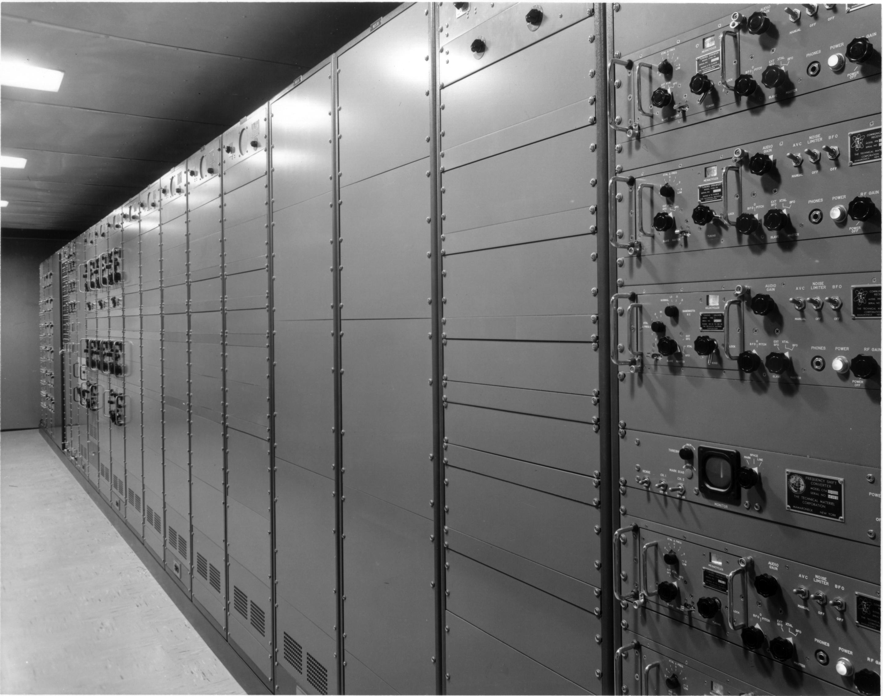 TT-331 Teletype Receive Groups, nineteen TT-176A page copy monitors, a monitor