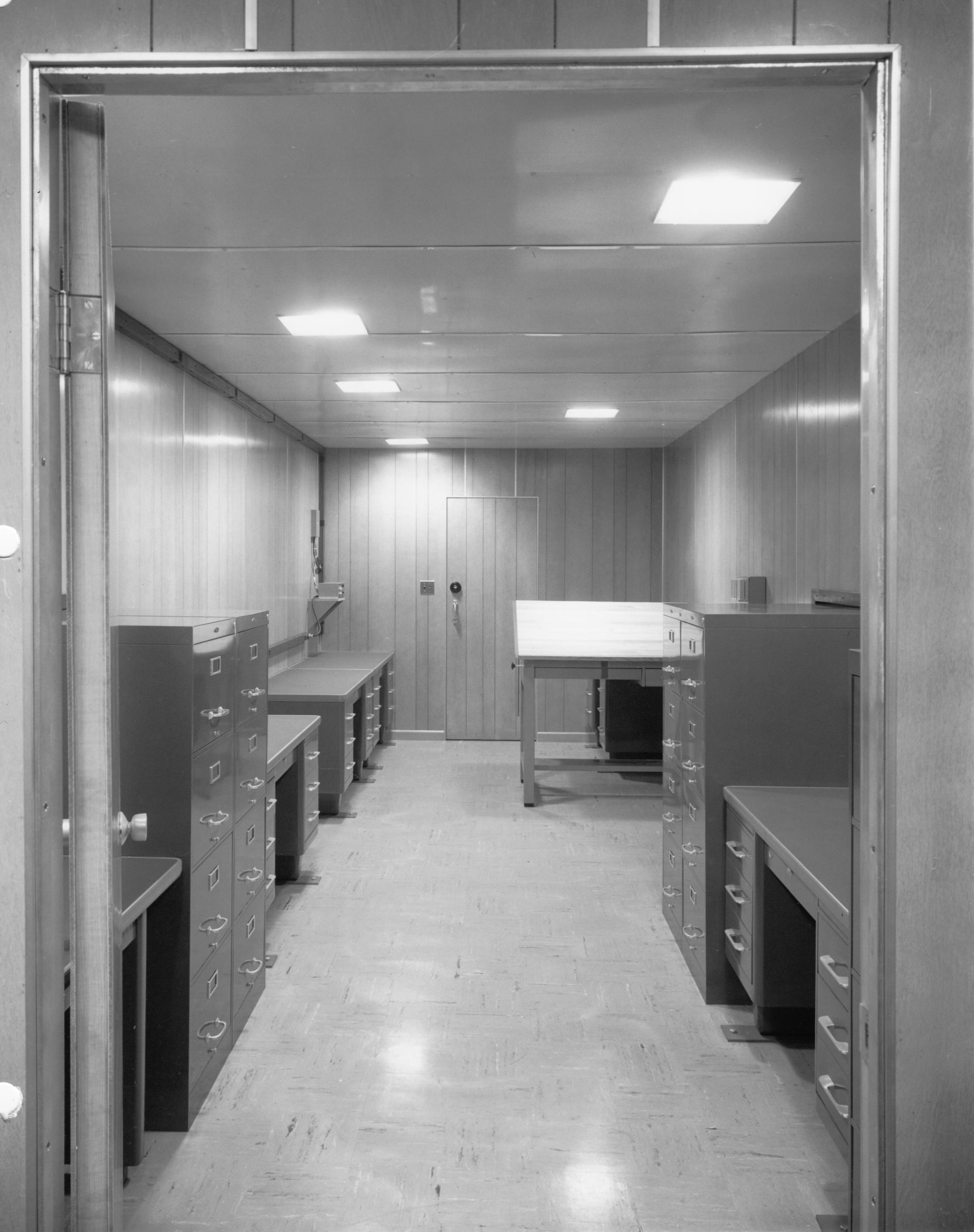 and a large floor-mounted safe for storage of classified material. The repair