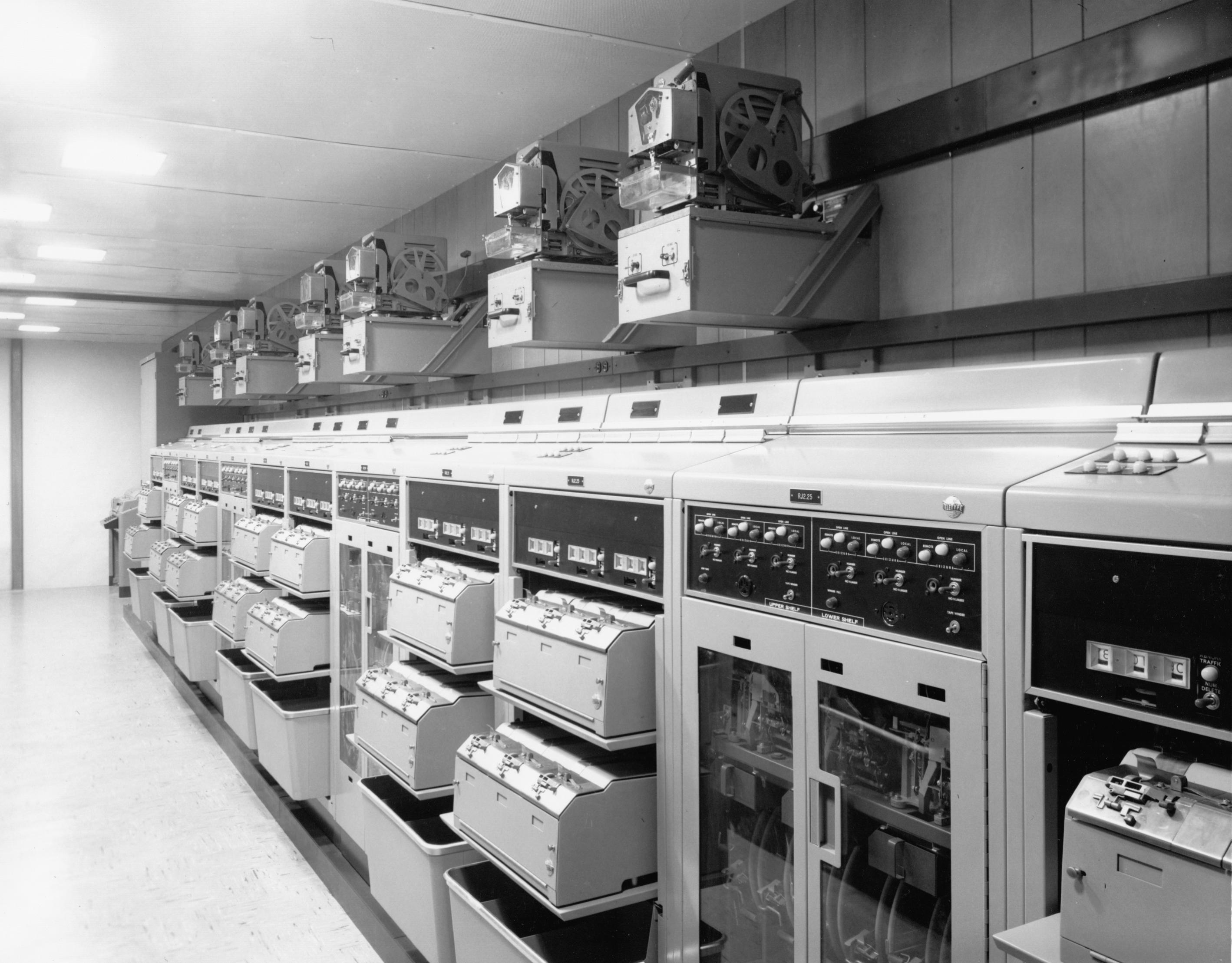 torn-tape relay facility. Teletype equipment provided in RJ1 includes eight