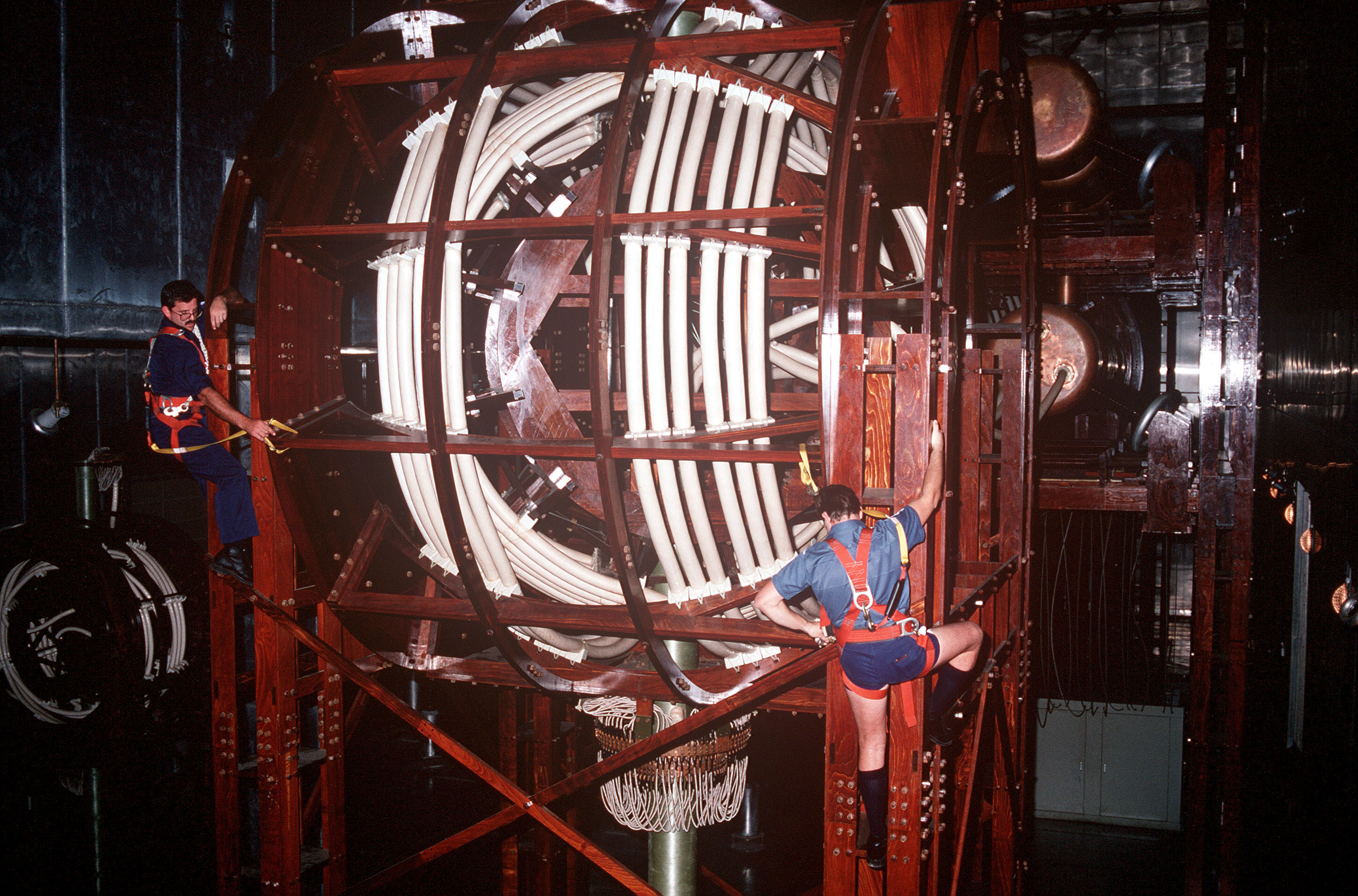 ET3 A. Blake Pilutti and RAN Leading Seaman John Briggs light up fluorescent tubes in Helix Room