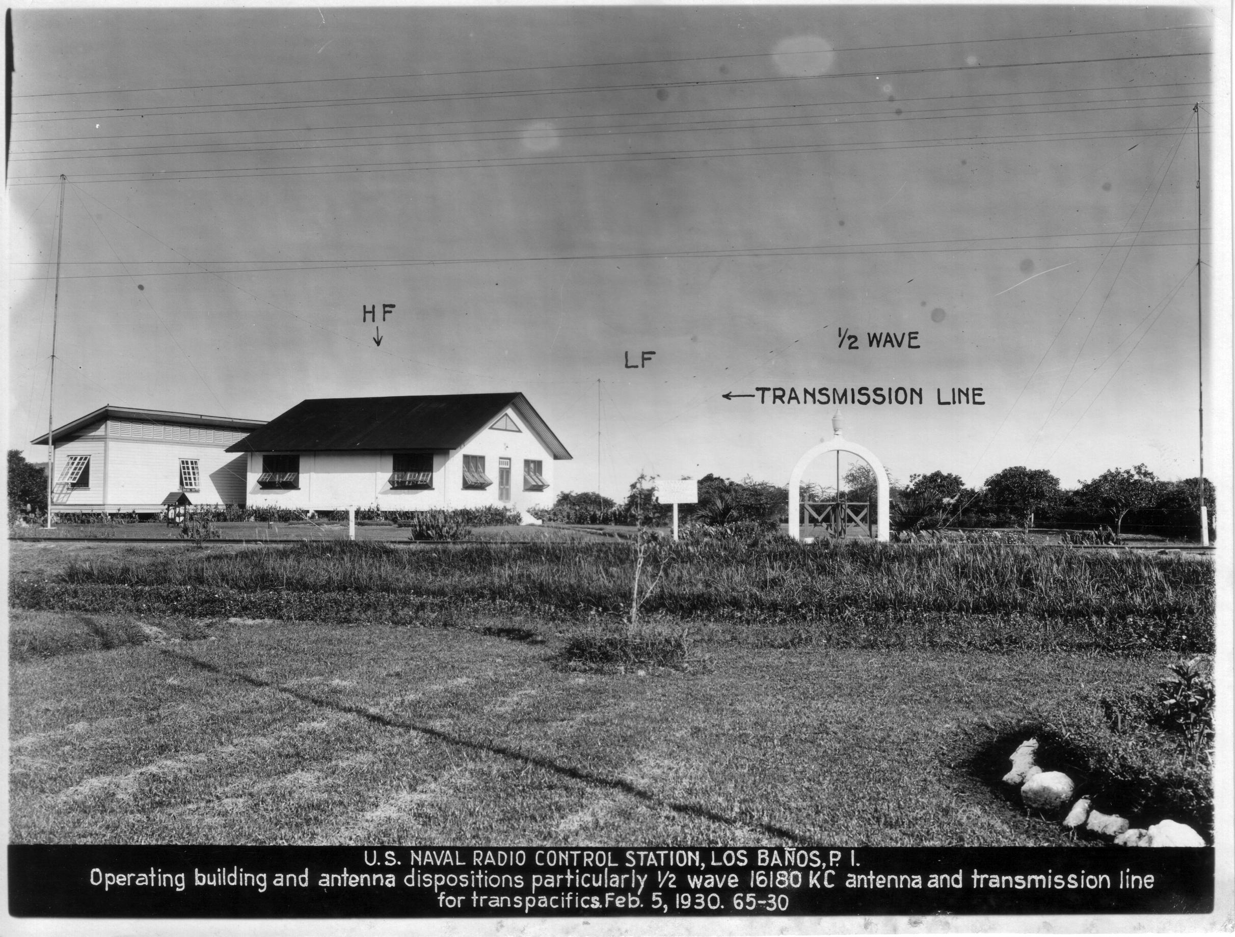 Operating building and antenna dispositions particularly 1/2 wave 16180 kc antenna and transmission line for transpacifics
