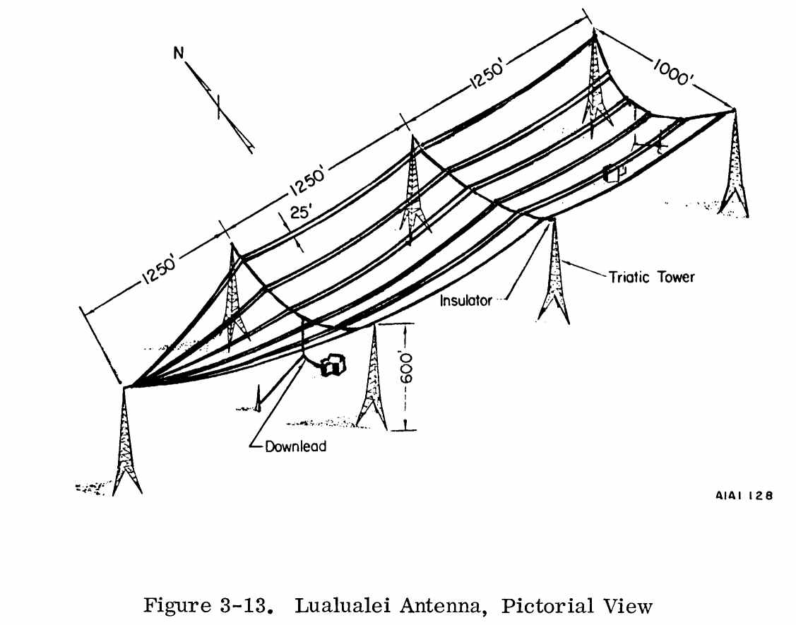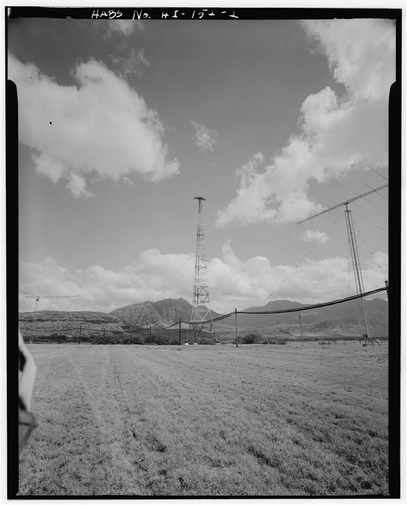 Construction of the transmitting station at Lualualei, intended to support a receiver station installed in 1920 at Wailupe, commenced in 1933. The main antennas were completed in 1935 and the facility was activated in 1936.