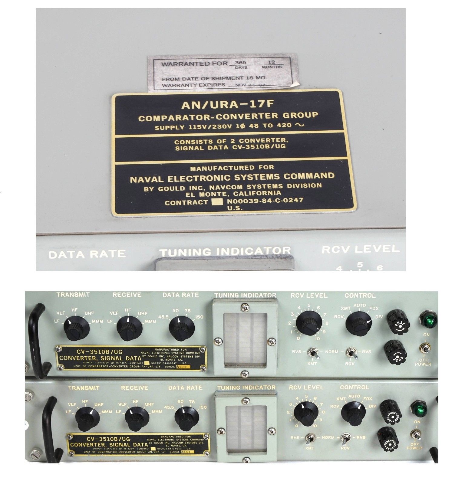 AN/URA-17F diversity system is composed of two CV-3510B/UG