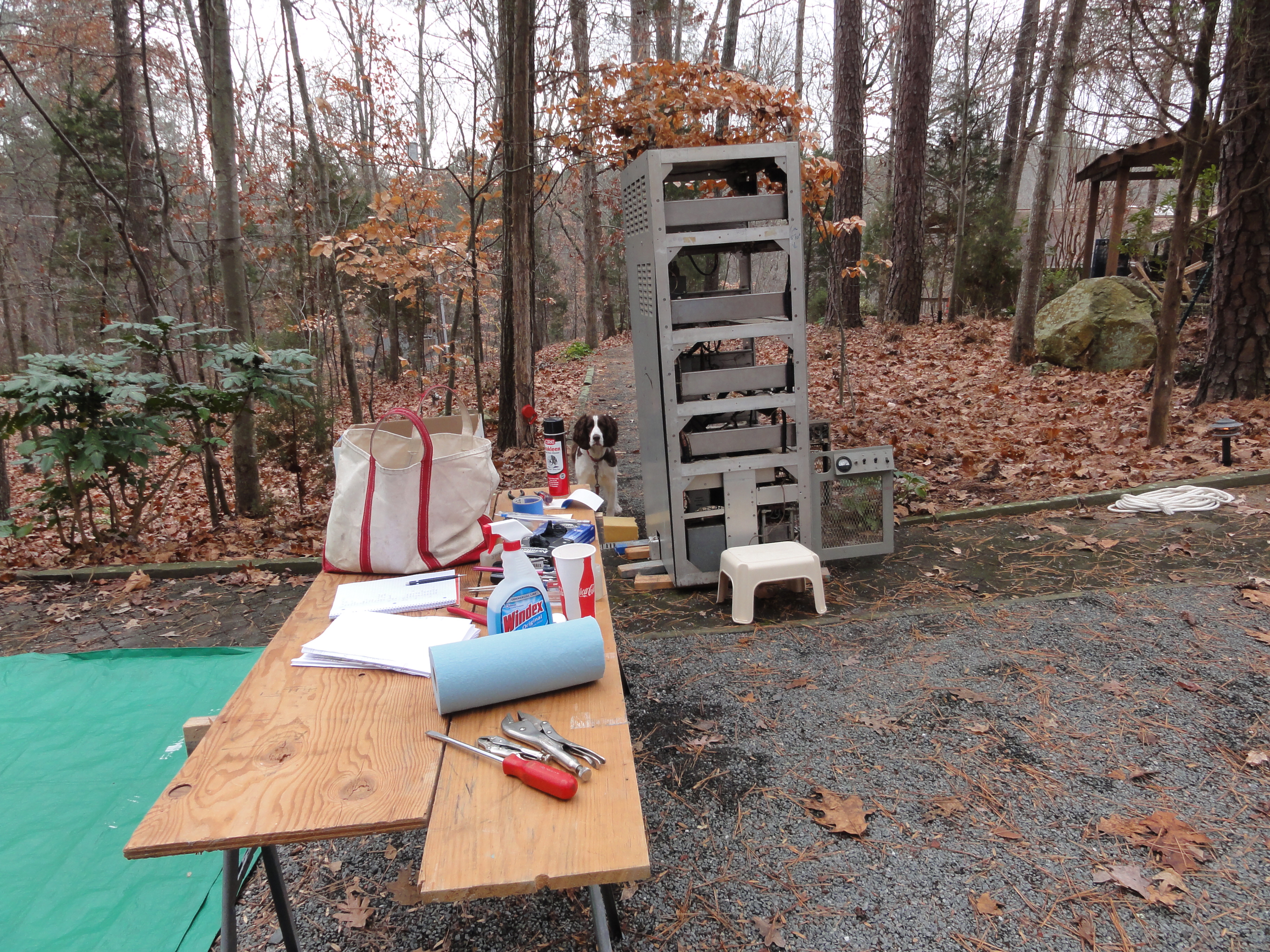 cleaning on the drawers and slides, removing mouse pee & poop, acorns,