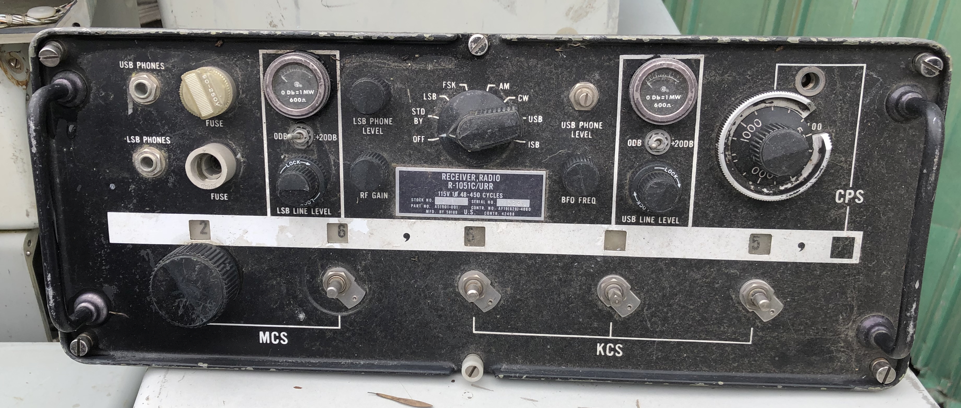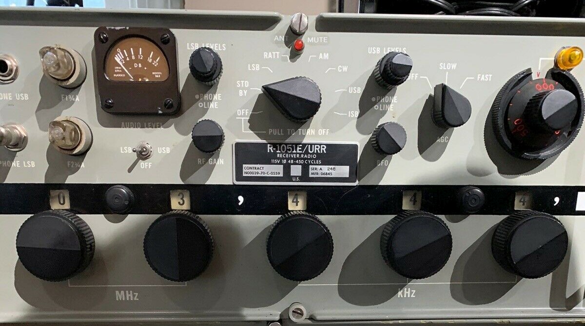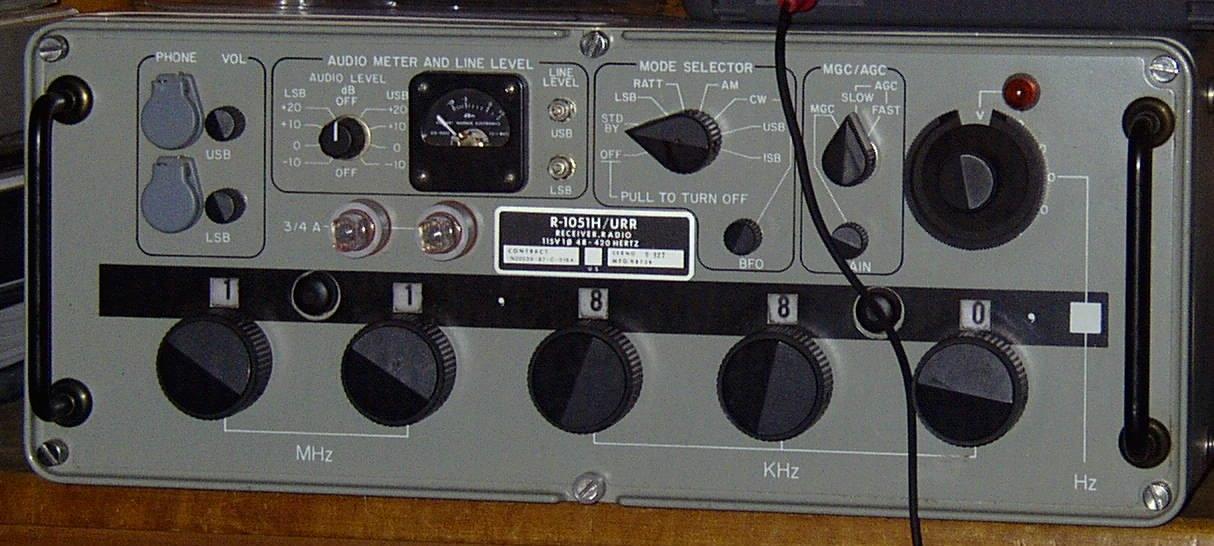 | R-1051A/URR | 0.1 kc steps | metal chains | dual meter | discrete transistors + 2 tubes "six-pack" |