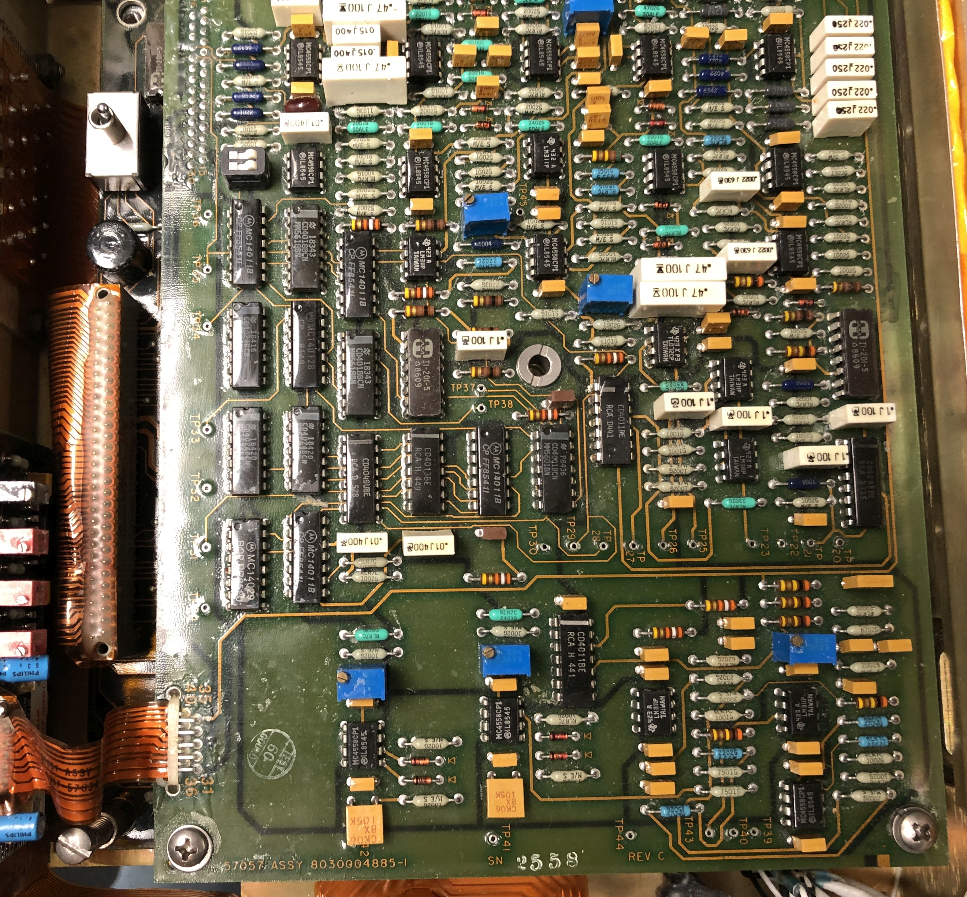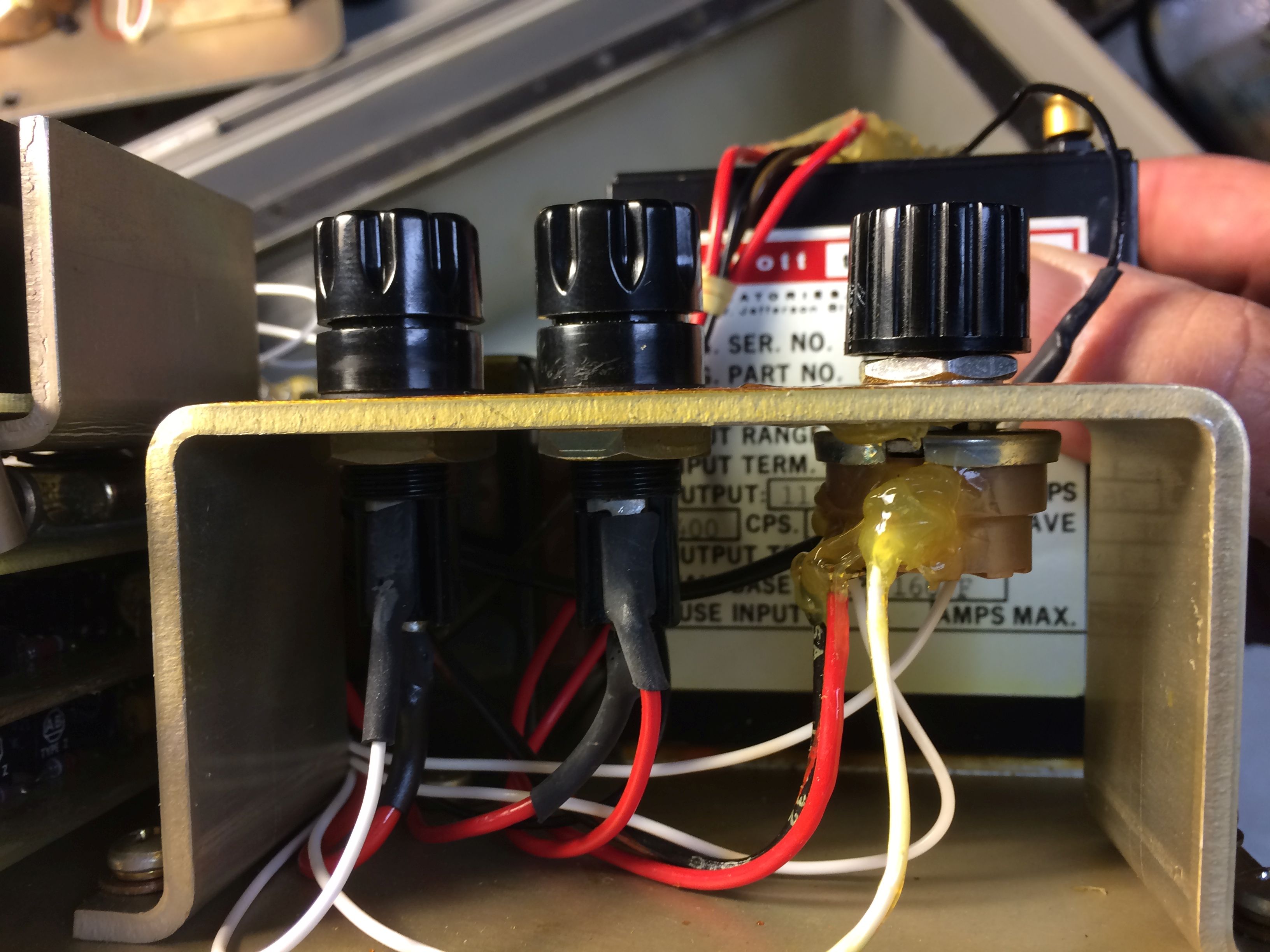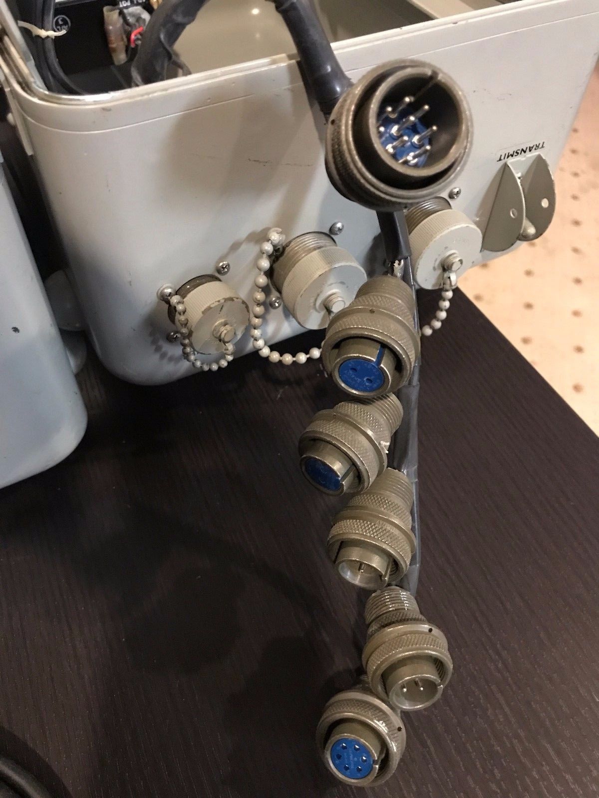 cv3510-test-1706-05.jpg (214325 bytes) The connectors shown on the left come from the case lid and plug into the Converter's receptacles shown above. They route these signals to the external connectors shown on the right. The unit can then be used while sealed up.