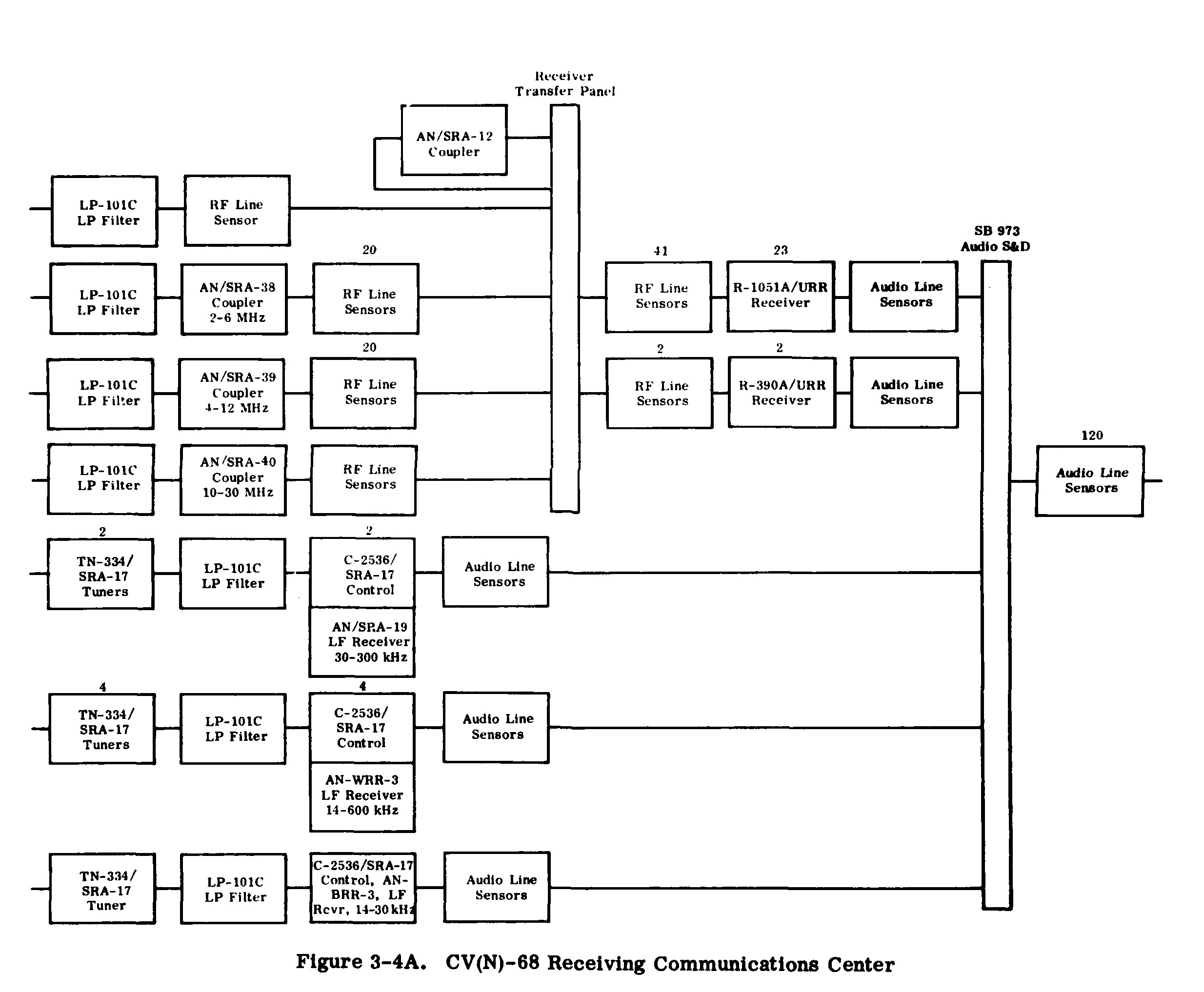 | AN/SRA-39 (20 receivers) | 4-12 mc antenna multicoupler | 1 |