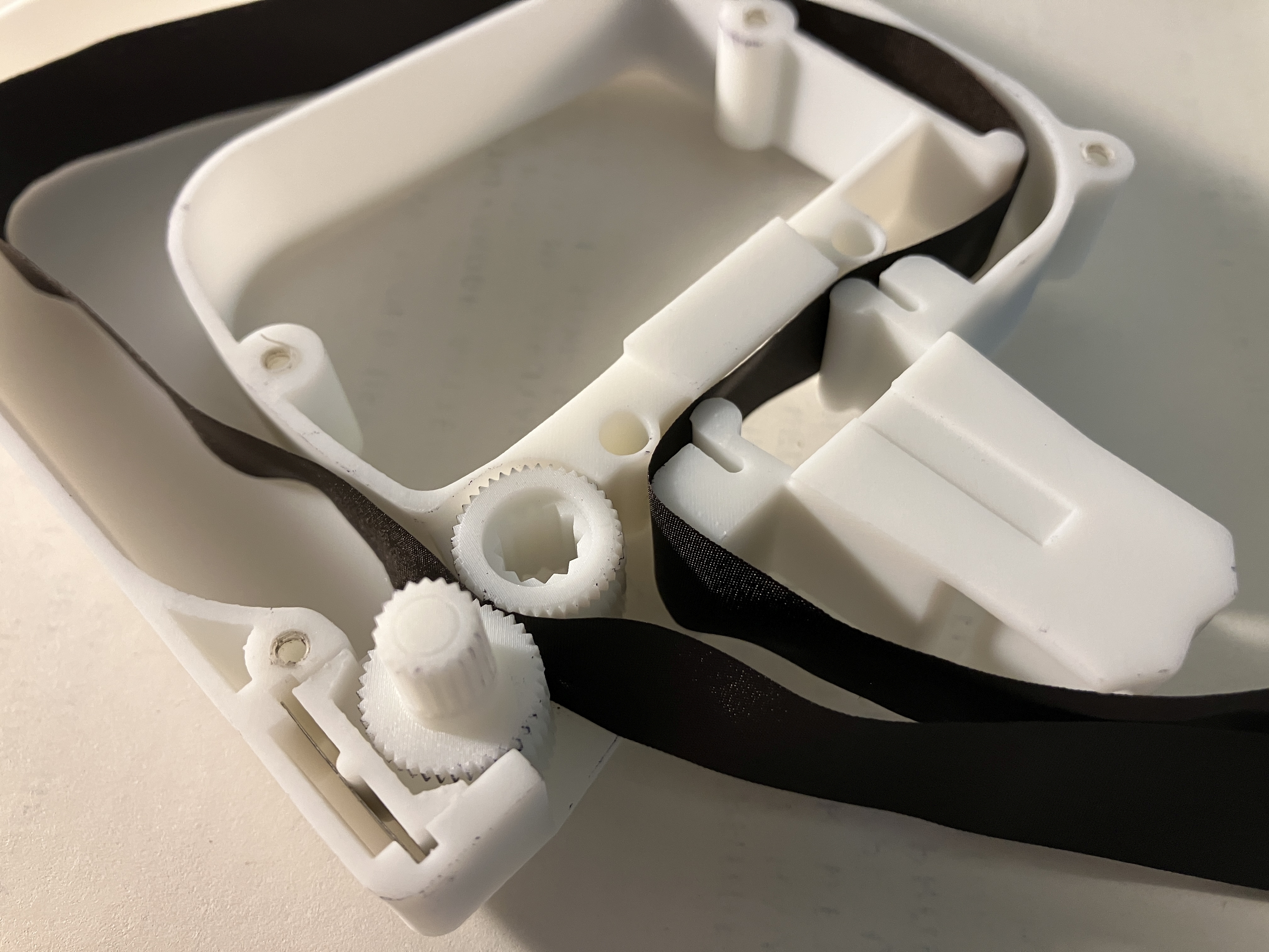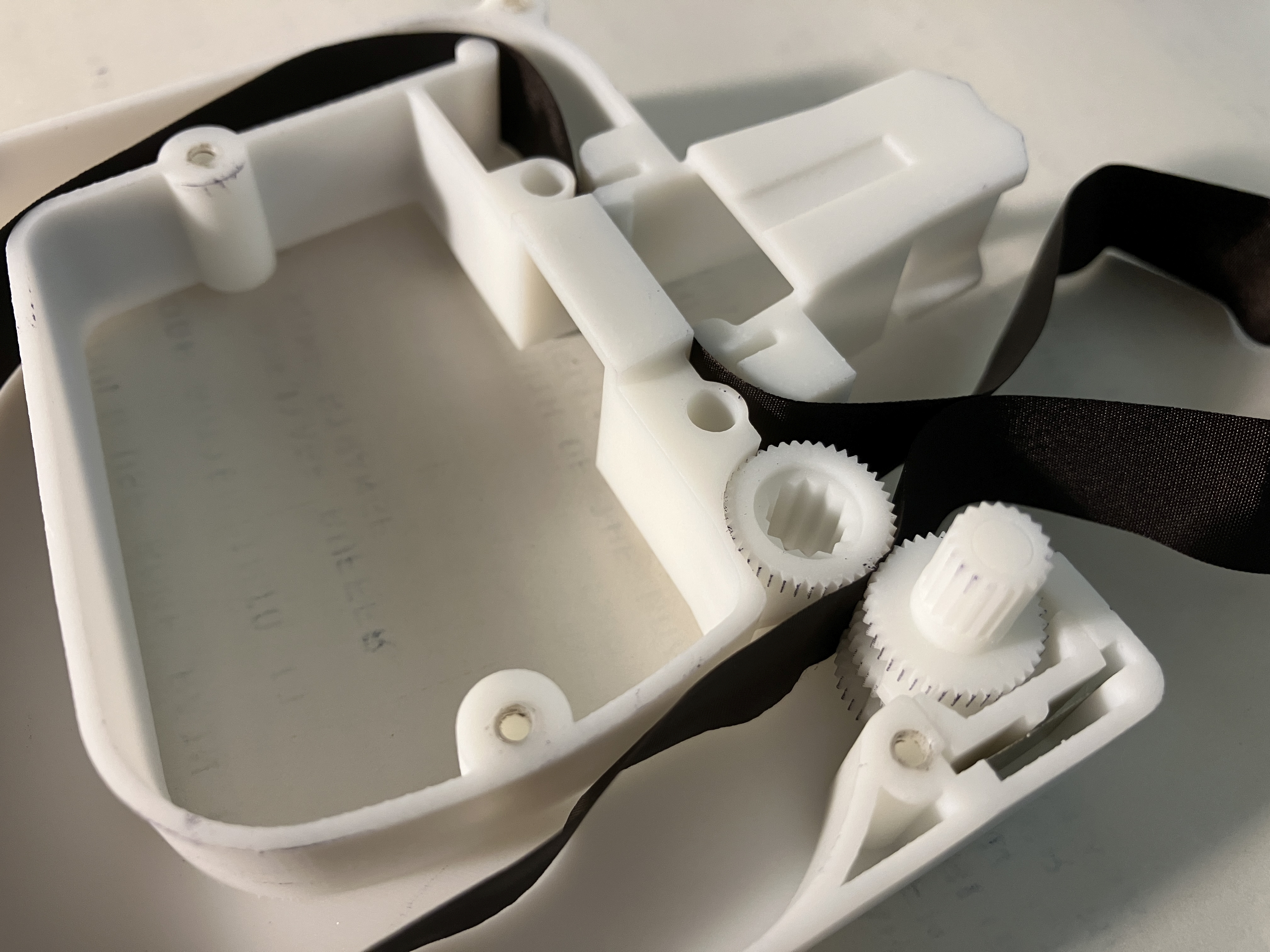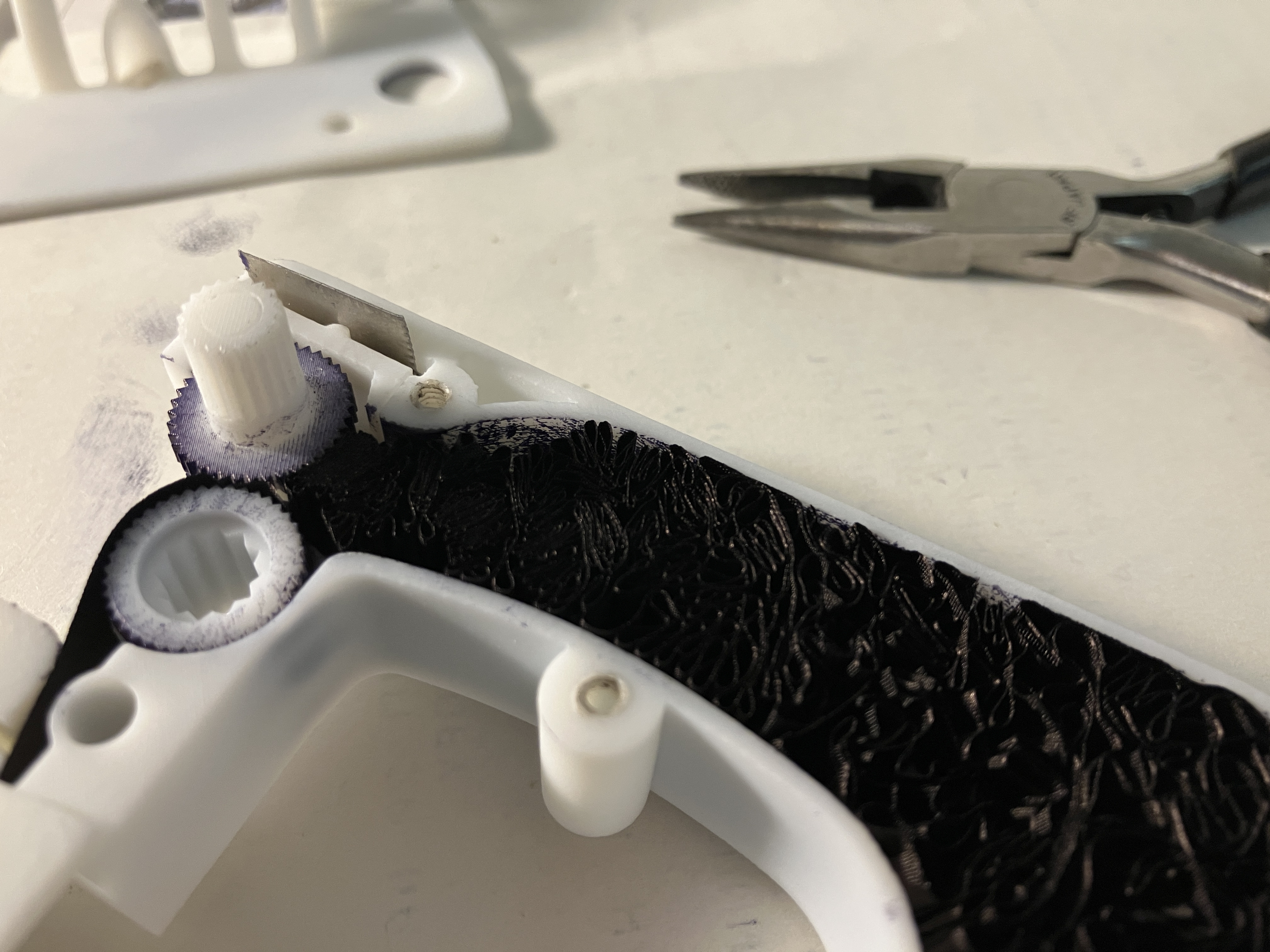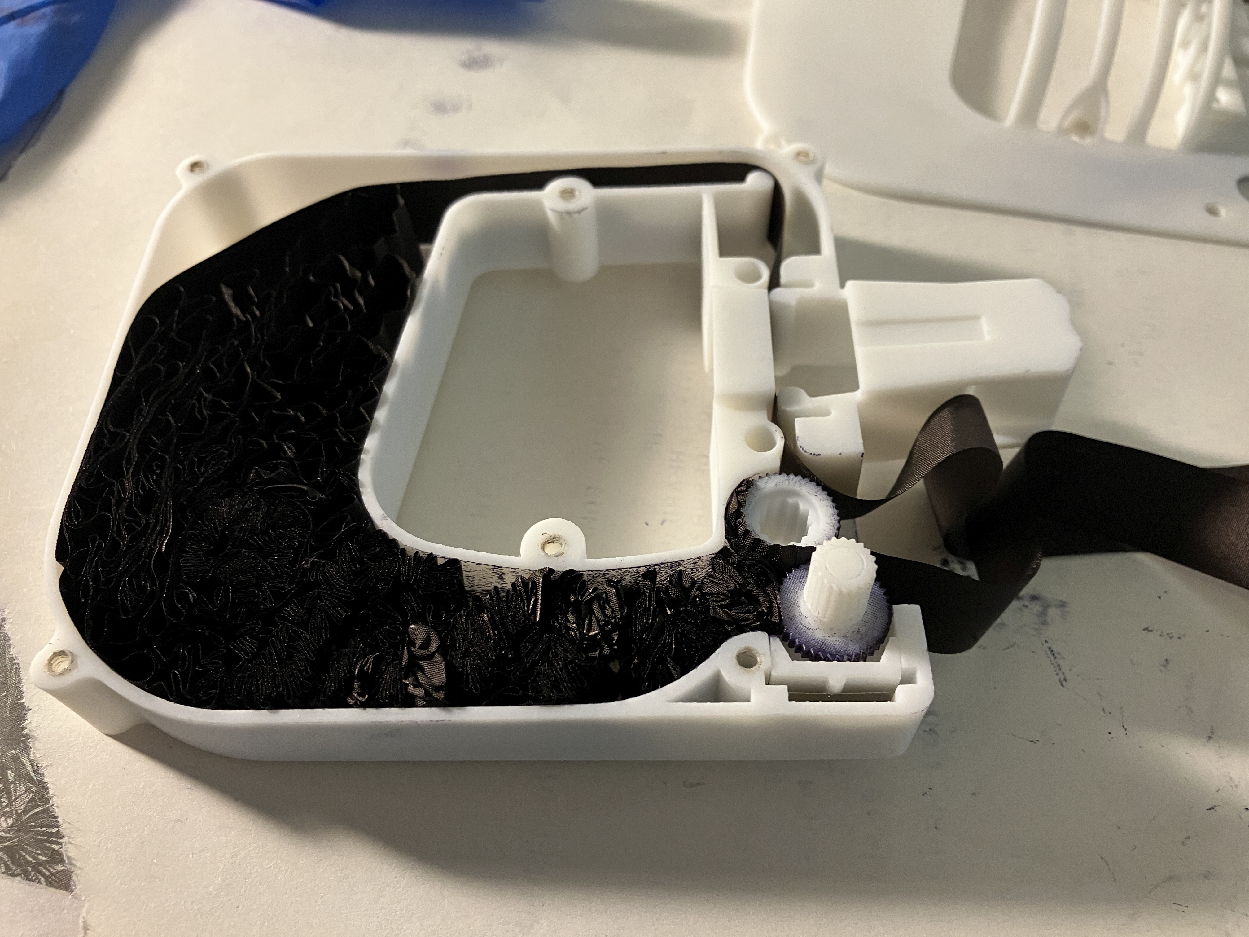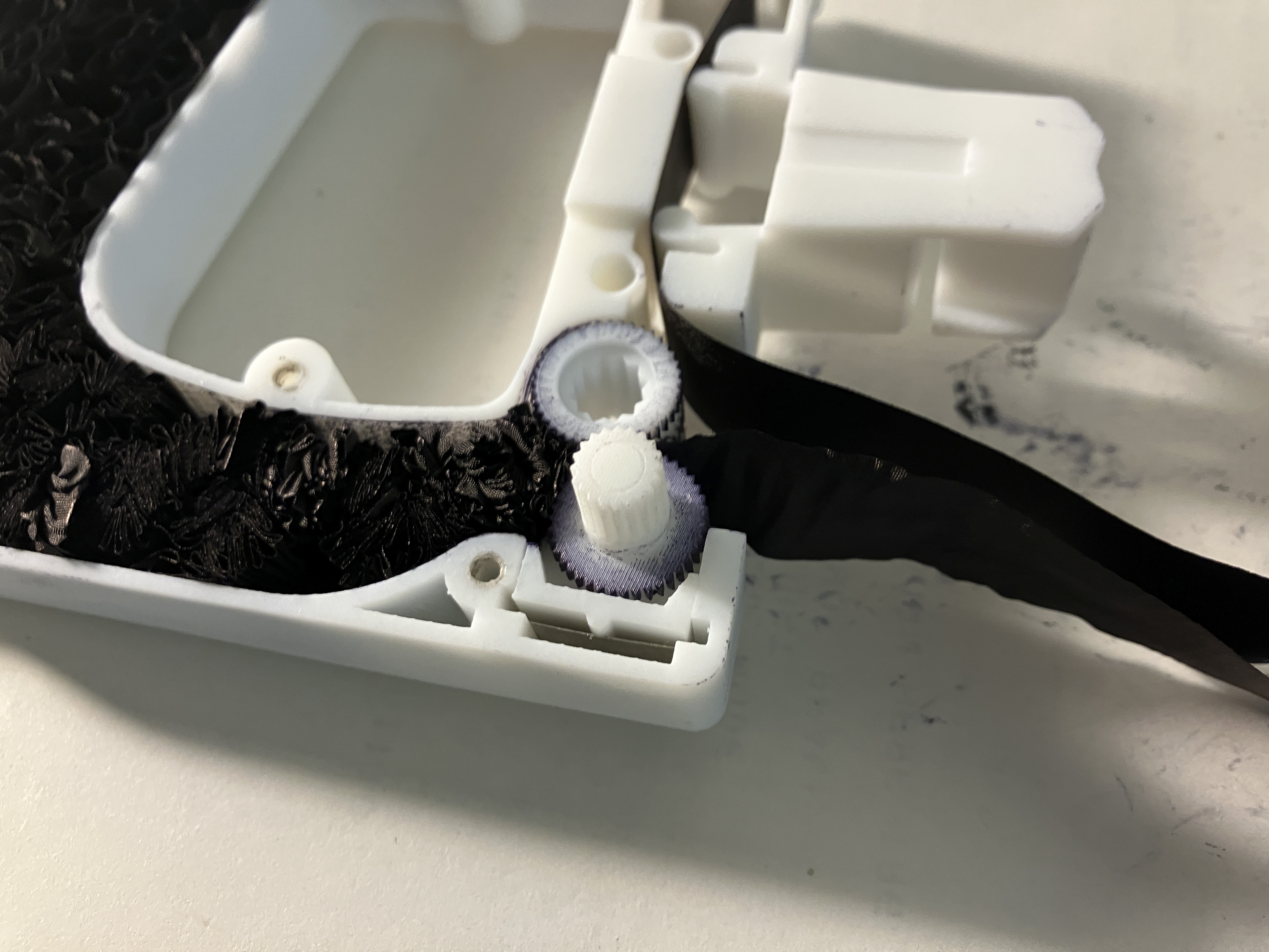 Once the ribbon is fully seated between the gears, you can put the top cover back on -